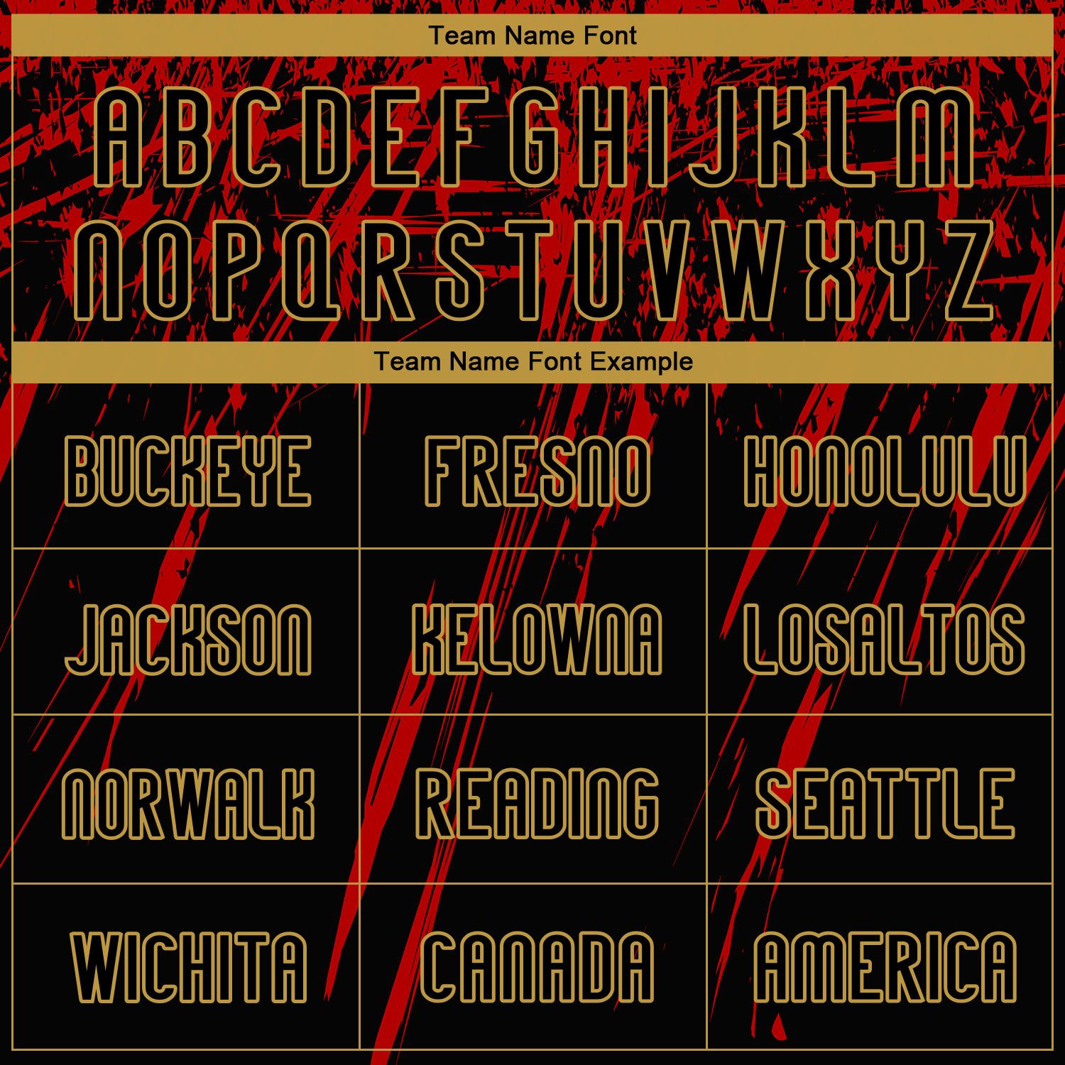 Custom Black Red Old Gold Splash Sublimation Volleyball Uniform Jersey