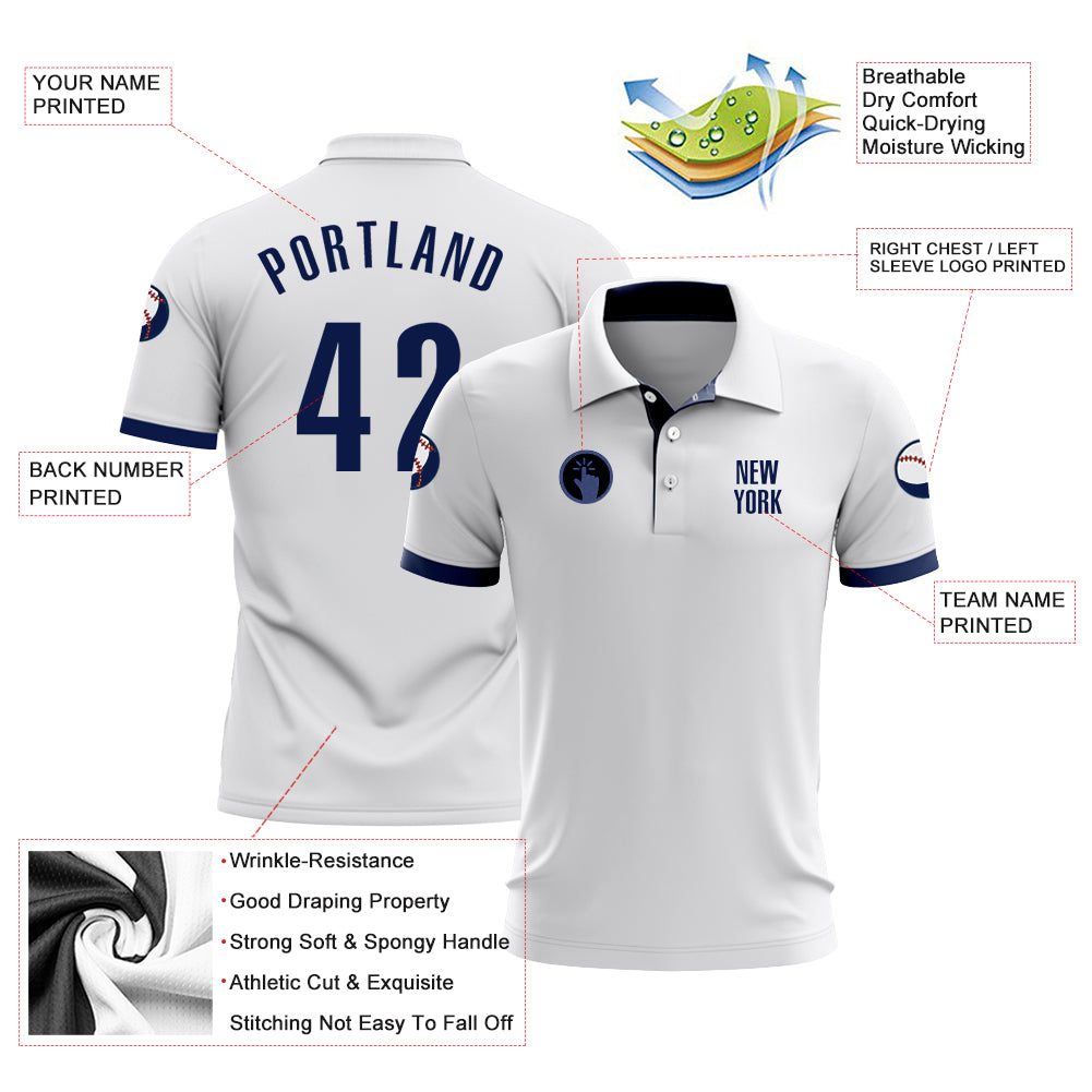 Custom White Navy Performance Golf Polo Shirt